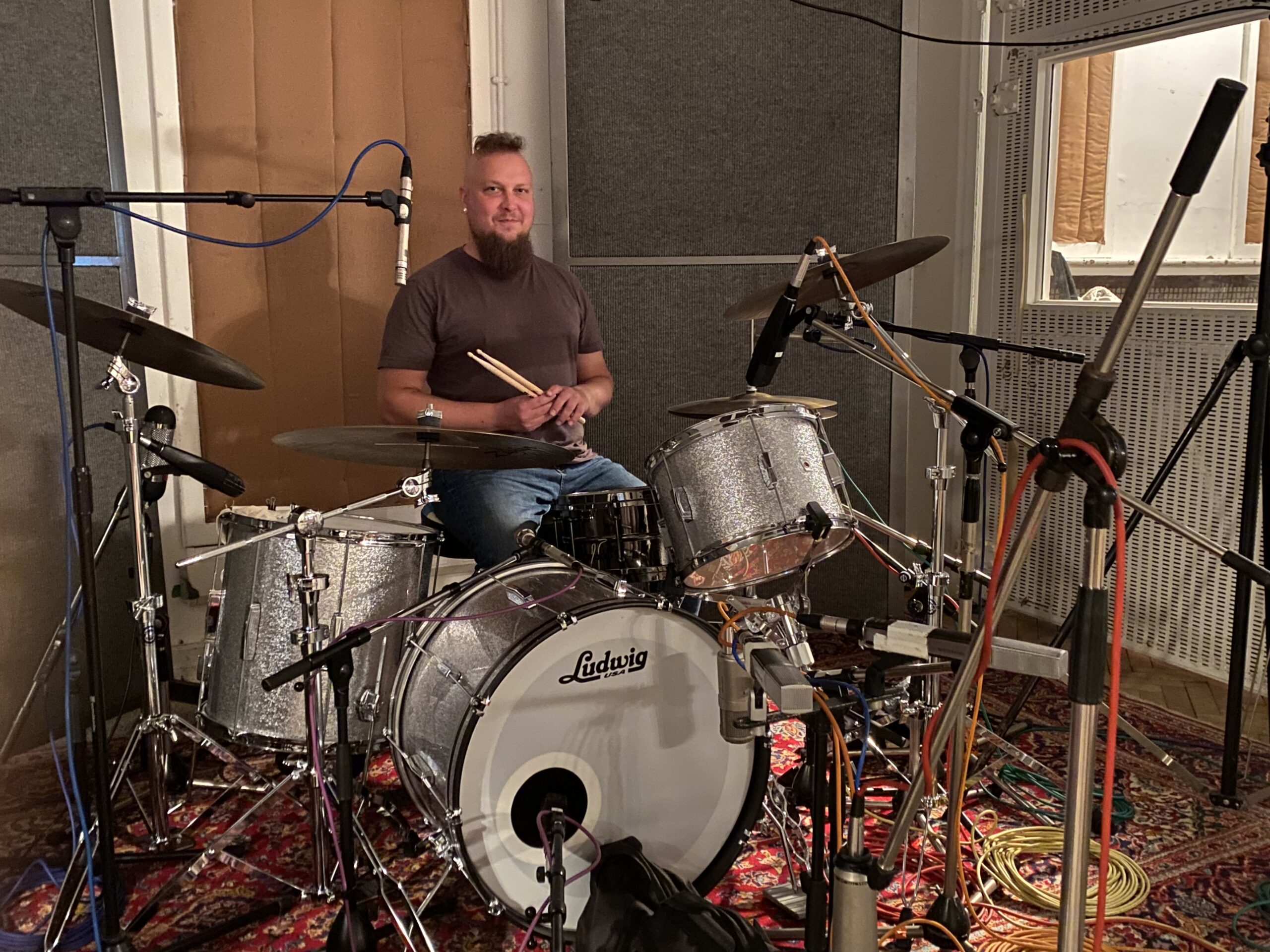 Pääinstrumenttini on rummut. Kuvassa äänitän niitä legendaarisella Abbey Road -studiolla. Tällä hetkellä soitan muun muassa Outi ja olevaiset -yhtyeessä. Aloitin keikkailun kymmenvuotiaana Ogelin pop/jazz-konservatorion bändikoulussa. Sittemmin keikkoja on kertynyt satoja eri instrumenteilla.